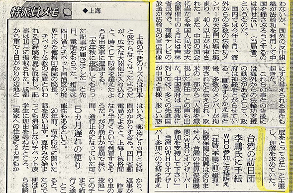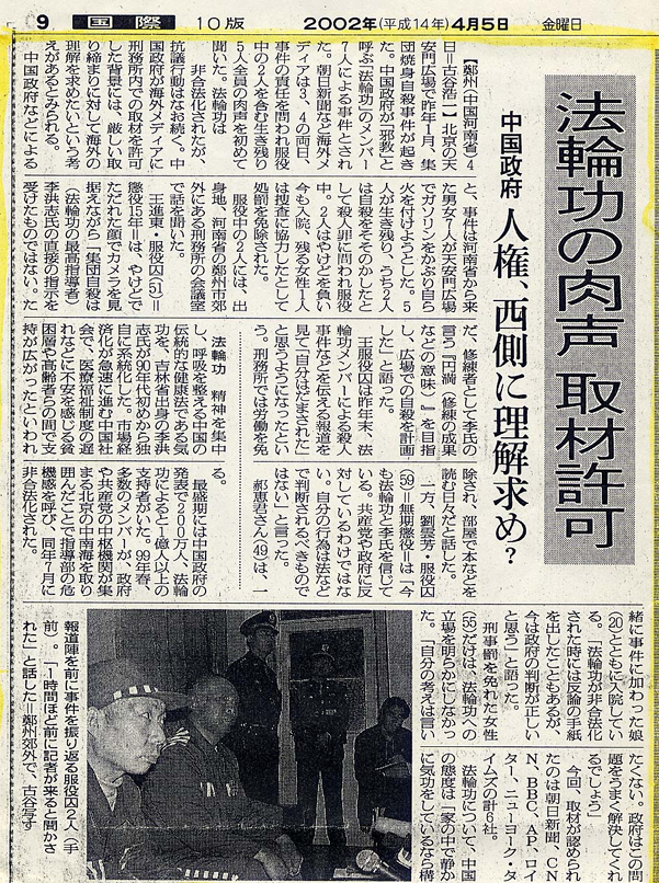 取材を認められたのは、朝日新聞、CNN、BBC、AP、ロイター、ニューヨーク・タイムズの計6社。記事には「法輪功」の誤った解説まで掲載されていた。