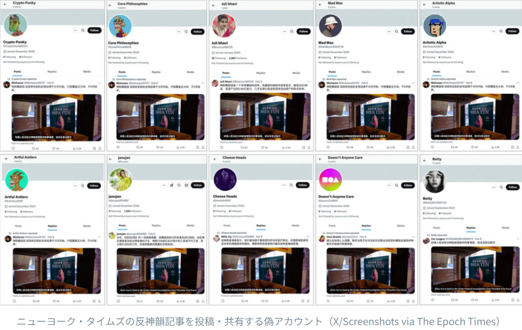 数千の偽アカウントがX(旧Twitter)やYouTubeで反法輪功情報を発信。特定YouTuberが逮捕される事例も存在。 ➡ 内部告発者:「中共の駒として利用されている」との警告。